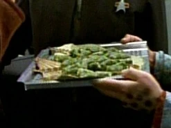 During his welcome reception for the Enaran people aboard USS Voyager in 2373, Neelix cooked algae puffs, among other foods. He offered some to Harry Kim, but the ensign declined. (VOY: "Remember")