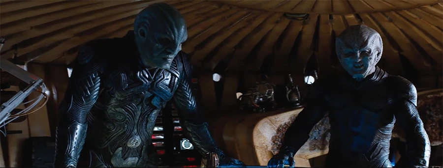 Upon the arrival of the Enterprise at Altamid, Krall attacked with his Swarm drones. He destroyed the Enterprise, captured most of the crew, and eventually coerced Ensign Syl into relinquishing the second Abronath piece. His weapon complete, Krall departed Altamid with his Swarm to wipe out all life from the nearby Starbase Yorktown, whose multicultural population he saw as the epitome of the Federation's degeneracy.
