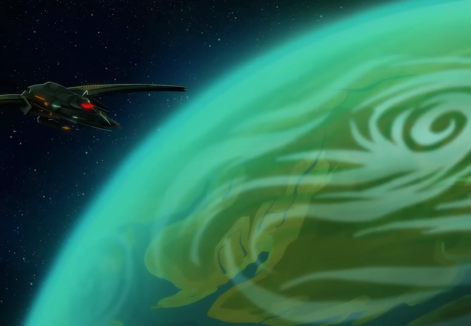 The planet's surface featured both forests and oceans. By 2382, one such forest was the site of a derelict Orion medical frigate from the time of the Great Plague over three hundred years prior. D'Vana Tendi and her band of Orion pirates fought with a group of Blue Orions for the right to salvage the frigate, with the former succeeding and piloting the ship off the surface. (LD: "Dos Cerritos")