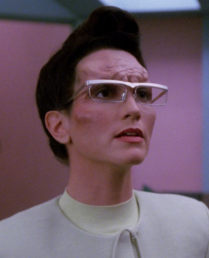 Beatrice "Bebe" Neuwirth (born 31 December 1958; age 67) is the actress who played the role of Lanel in the Star Trek: The Next Generation fourth season episode "First Contact". Neuwirth's scene was written in late with her in mind for the role. (Star Trek: The Next Generation Companion, 2nd ed., p. 156) She filmed her scenes on Friday 7 December 1990 and Tuesday 11 December 1990 on Paramount Stage 16. On 7 December she had a makeup call at 6:00 am and the call sheet for this day features the note that she was unavailable between 10:00 am and 1:30 pm because of a Cheers rehearsal. Neuwirth herself is a big Star Trek fan. (Michael Piller, "Inside the Star Trek Archives – "First Contact", TNG Season 4 DVD special feature)