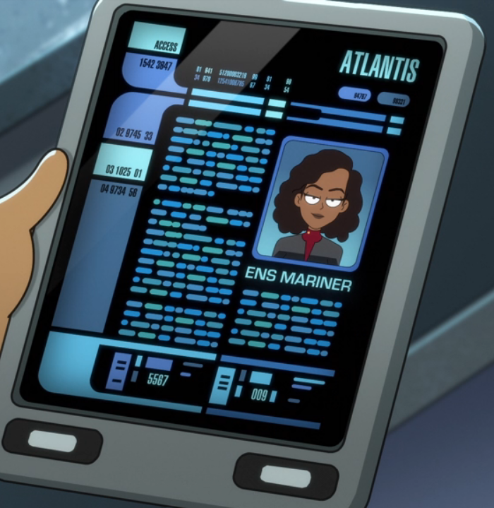 In another alternate reality, Mariner still had the same friends, but instead served as an engineer on the Cerritos, hated adventures, and was far more compliant, as implied by her never having been in a cell. While investigating the quantum rifts, Mariner's shuttle inadvertently crossed through one where she was rescued by the Anaximander commanded by Captain William Boimler from the prime universe. This Mariner went on to play a vital role in the mission to stop the quantum rifts, using her engineering knowledge to draw the USS Beagle to the Anaximander and later helping the Anaximander to catch up to the other ship. (LD: "Fissure Quest")