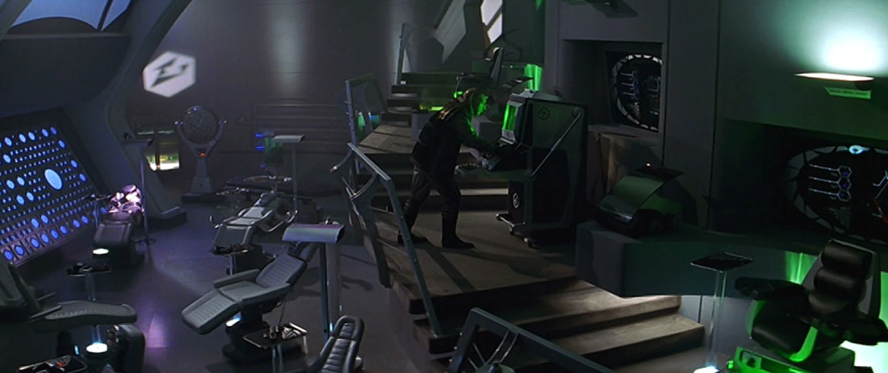 The set was originally used as the Museum of Kyrian Heritage in the Star Trek: Voyager fourth season episode "Living Witness", built on Paramount Stage 16. A few modifications including new walls, set decoration and painting were done. (Delta Quadrant, p. 239; The Secrets of Star Trek: Insurrection, p. 117)
