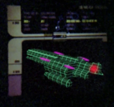 The green wire-frame on-screen buildup of the Erstwhile was one of the earliest CGI applications in the Star Trek franchise. [2]