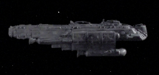 The model for the Erstwhile was a reuse of the Ornaran freighter, Sanction from TNG: "Symbiosis". For further information on the studio model, see: Batris model
