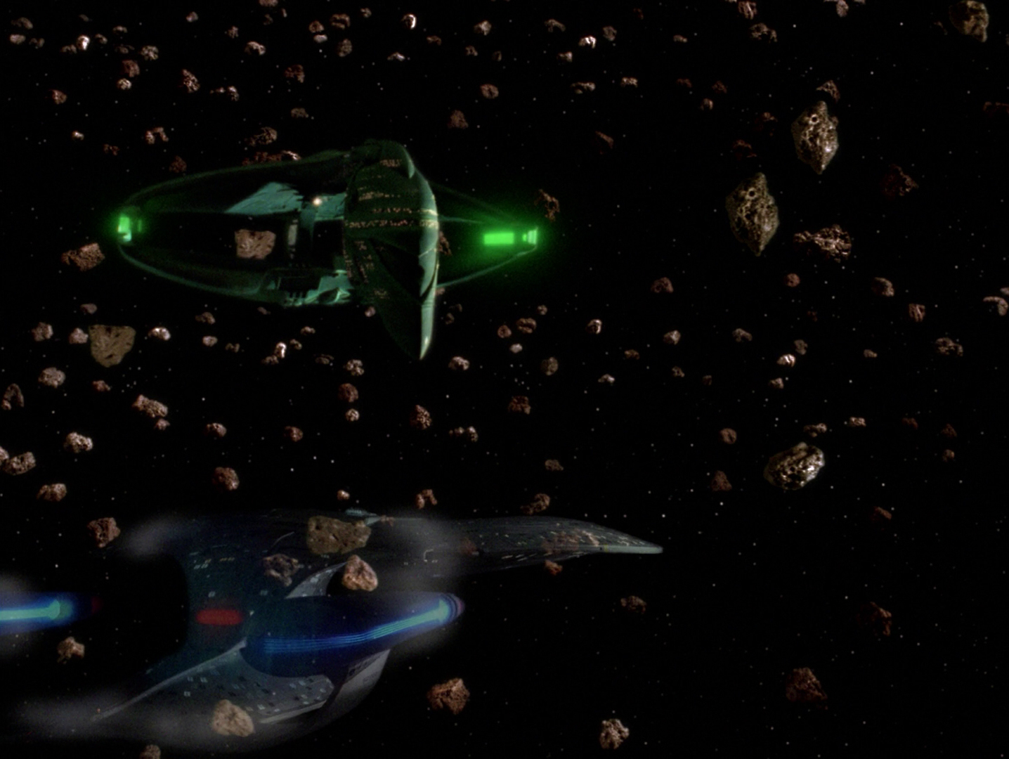 Sensors aboard Deep Space 9 were also able to detect an entire nearby fleet of cloaked Klingon vessels jumping to warp as "a huge distortion wave in subspace", and Miles O'Brien was able to deduce their heading from the vector of the subspace disturbance. (DS9: "The Way of the Warrior")