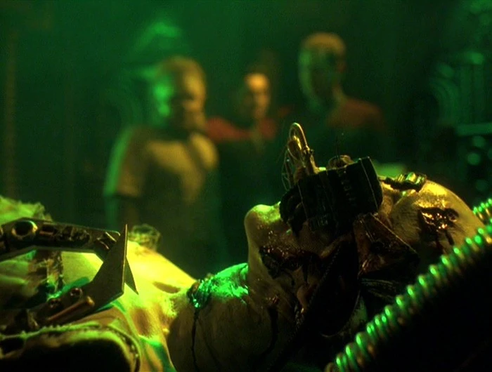 In the chamber of horrors: Paris, Neelix and Chakotay are in a Borg assimilation chamber