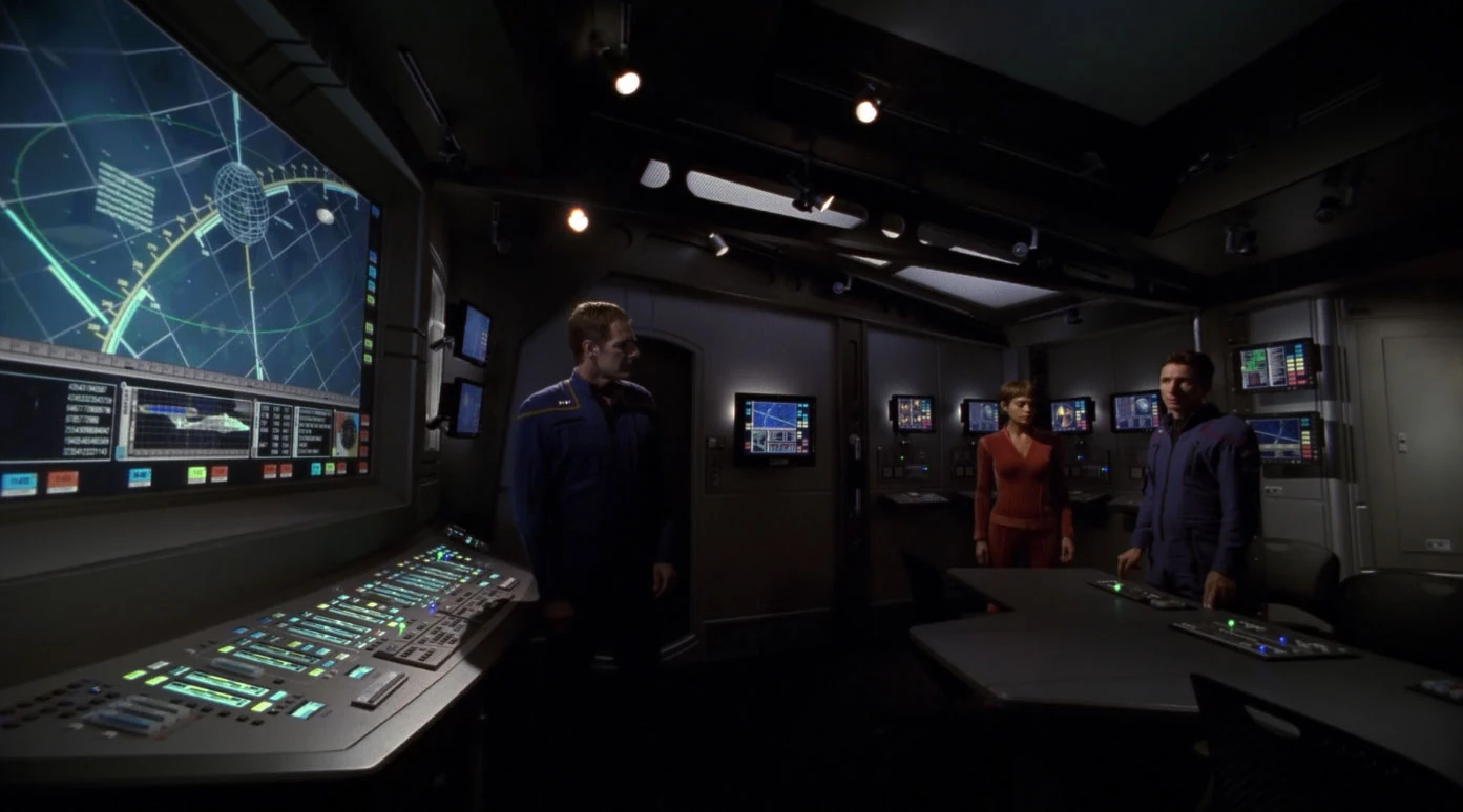 Denise Okuda approved of the command center. "That was a fun set," she enthused. "There were monitors all over the place." (ENT: "Observer Effect" audio commentary, ENT Season 4 Blu-ray special features)