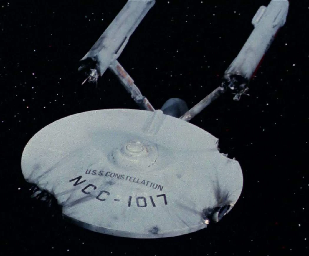 Fortunately as chance would have it they were supplied with a crude internal lighting option. One was distressed, its decals rearranged to read "NCC-1017", to appear as the battle-damaged Constellation. The first issue of the kit sported the model with a smooth surface on the aft of the nacelle (thereby approximating the appearance of the Enterprise in the pilots) and as such the Constellation differed from her sister ship on screen, which by then sported spheres on the aft of the nacelles. [64] The Constellation model was most likely discarded after use (although footage of this model was to be reused to represent the USS Excalibur in "The Ultimate Computer").