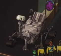 By the time of his death in 2381, the Zibalian collector Kerner Hauze had acquired the rover and had it put on display in one of the galleries aboard his ship. (LD: "Kayshon, His Eyes Open")