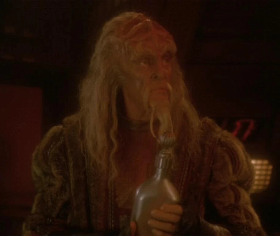 While the Ch'Tang's bridge crew monitored the progress of the attack, Darok brought a bottle of bloodwine onto the bridge, in defiance of regulations. He told Martok that whether they succeeded or failed, Martok could still toast their courage. When Kor succeeded in saving the fleet, at the cost of his own life, Martok passed around the bottle and Darok led the bridge crew in a song to honor the fallen Dahar Master. (DS9: "Once More Unto the Breach")