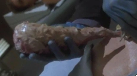 Precisely how to show the Dax symbiont (such as in "Invasive Procedures") was a concern for the production staff. "We didn't want it to look cheesy. It was always a problem showing it," explained David Livingston. "It's that whole idea of Alien; you don't really want to see too much because the audience is either going to be repulsed by it or say it's too hokey." (Captains' Logs Supplemental - The Unauthorized Guide to the New Trek Voyages, p. 63)
