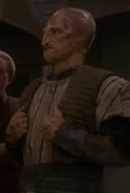 This individual – from a species a bald head, grayish-yellow skin, an upturned nose, and wide mouth – occasionally visited DS9 shortly after it was initially established.