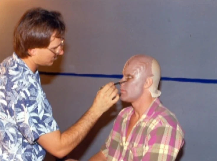Klingon makeup being applied to an actor for Star Trek III