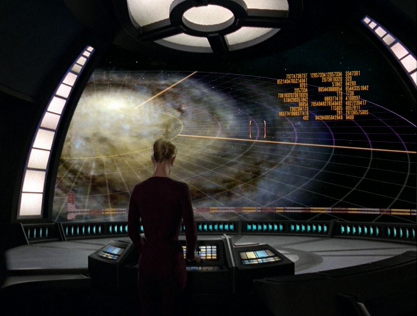 But then her console starts to beep insistently. She informs him that long-range astrometric sensors have detected high neutrino emissions and intermittent graviton flux consistent with wormholes. Realizing the importance of this, Neelix offers to continue the game with her the next day. She agrees.