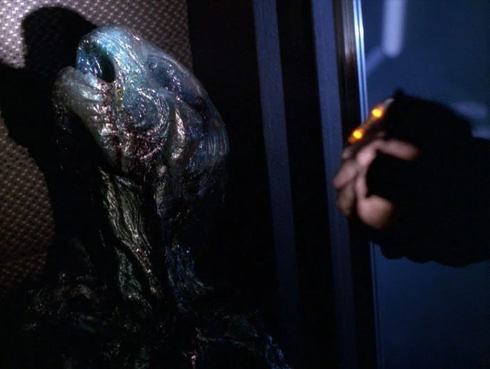 - Because this episode features a lot of members of a completely new alien species (specifically, the nucleogenic lifeforms), Visual Effects Supervisor Ronald B. Moore remarked, "This is probably the most ambitious show I have ever seen." The physical appearance of the aliens was designed by Pacific Ocean Post and was rendered CGI by Santa Barbara Studios. Similarly, the Equinox's exterior was designed by Senior Illustrator Rick Sternbach and visualized by Digital Muse. (Cinefantastique, Vol. 31, No. 11, p. 46)