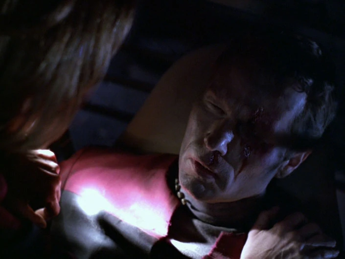 - - Chakotay, when Janeway is attacked from her back by the nucleogenic being (last line)