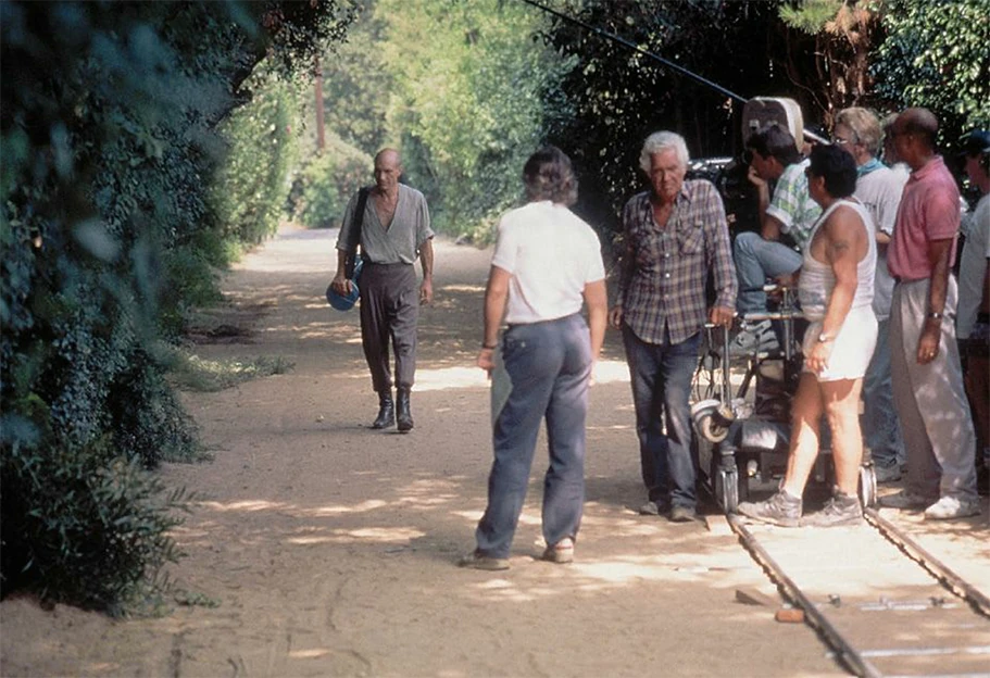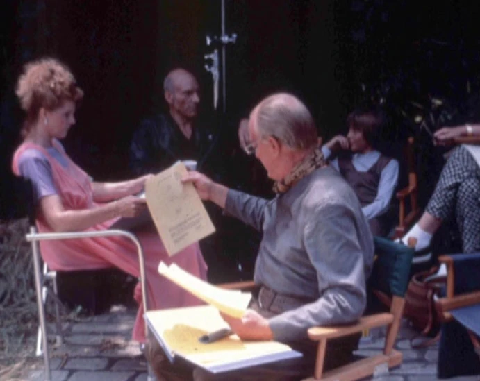 Filming Picard's homecoming (director Les Landau in white T-shirt instructing Patrick Stewart)