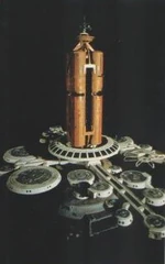 This studio model was originally built as the orbital office complex for Star Trek: The Motion Picture. [1]