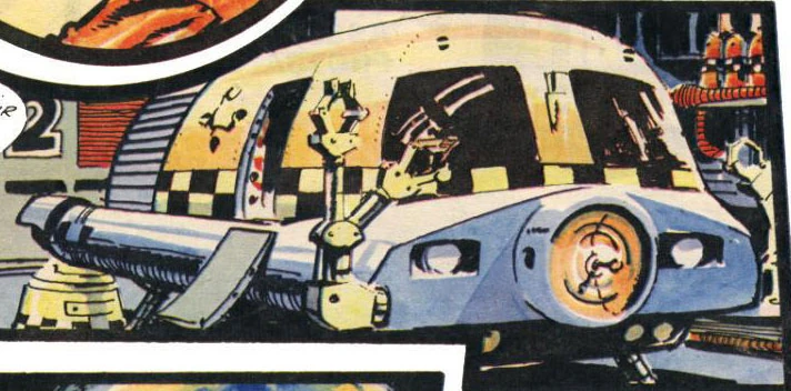 - This story introduces a work bee-like vehicle called a "repair wagon". It is yellow on the top half, with a checkerboard pattern across the midsection, resembling a taxicab. There is a large deflector dish on the front, not unlike that of the Enterprise.