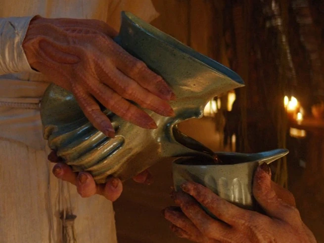 In a line cut from the episode, Burnham describes the tea as "salty...but fragrant." Bo Yeon Kim also described it as "obviously full of antioxidants". [1]