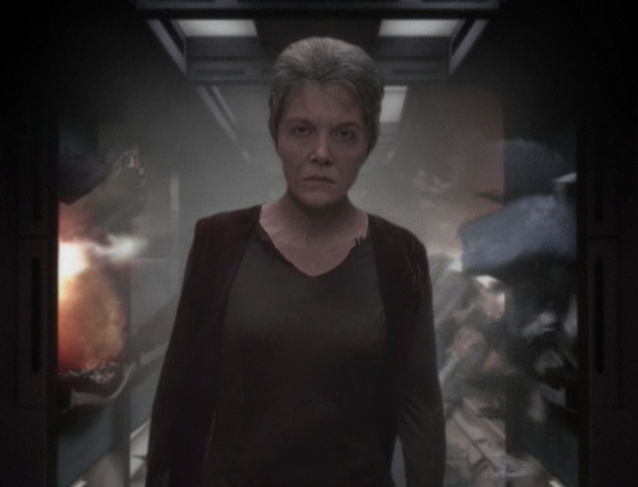 Furiously, she makes her way to engineering, giving off high levels of neurogenic energy that destroy the sections she is walking through. She does not respond to any hails from the captain and even force fields cannot hold her back.