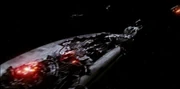 Long after Deep Space Nine and Voyager had wrapped, Digital Muse's model made one last reappearance in another official live-action production, when it was featured in the opening scenes of the film portion in the 2004 Borg Invasion 4D-ride at the Star Trek: The Experience-attraction. Former Foundation Visual Effects Supervisor Adam Lebowitz was now serving in a similar function at Threshold Digital Research Labs for this film and had access to the digital database of previously used CGI live-action production starship models. Several of these featured, mostly as scenic backdrops in the opening and closing scenes.