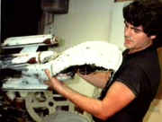 Once given the go-ahead, a second set of one-to-one scale working drawings of the six-foot model were prepared and sent to ILM, and from then on the model-shop was on a tight schedule. "They called us on a Friday. They said, "OK, we accept your price to build the ship; we want you to start on Monday and build it in 10 weeks." I said 12 weeks. I knew what it took to build other ships, and I knew that this one would be more difficult.", Mann remembered. (The Official Star Trek: The Next Generation Magazine issue 2, p. 30) First order of business for Mann was composing the team that was to build the two models. As lead modelers he chose Greg Jein (as pattern or master lead) and Ease Owyeung. The team was further filled out by Sean Casey, Bill Concannom, Bill George, Wesley Seeds, Larry Tan, and Howie Weed, while Steve Gawley was given the task of preparing the Excelsior-class studio model, for its re-use. (The Official Star Trek: The Next Generation Magazine issue 2, pp. 31, 40)