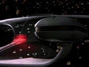 "So I did the two shots of the Enterprise-D going into warp on the feature. The original effect was done using motion control and slit-scan, which was really the only thing that was practical at the time. The problem with slit-scan approach, which involved projecting a slit of light onto the model from front to back, was that we couldn't have rim light, all the light had to come directly from the side, and we couldn't do slit-scan on a light pass. If you analyze the warpdrive stretch in the TV show, you'll notice that the portholes go off as soon as the stretch starts! It worked fine for what the TV show intended to do, but today it just barely holds up, even on television. "When we were faced with doing the same for the feature, I figured we should use computer graphics, which would allow us to do the effect the right way-the ship could stretch out, its blinkers could keep going and the lighting wouldn't change. Admittedly, back in 1987, we couldn't really do a completely realistic CG Enterprise that looked as good as the motion-control model, but I think we achieved that this time. Basically, we took a CG model of the Enterprise-D and just snapped it into warp drive. It's easy enough." (American Cinematographer, April 1995, pp. 87-88)