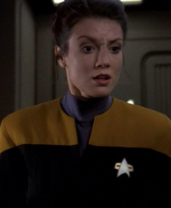 - - B'Elanna Torres, as Tal Celes delivers a PADD with instructions from Seven of Nine