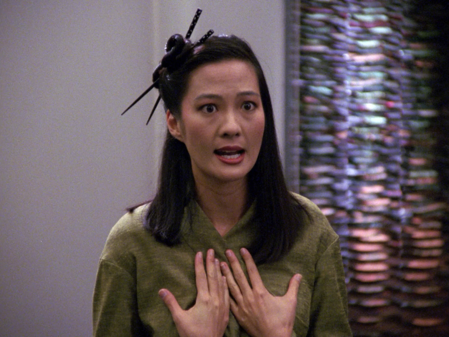 Keiko Ishikawa wore hairsticks while preparing for her wedding to Miles O'Brien in 2367. (TNG: "Data's Day")