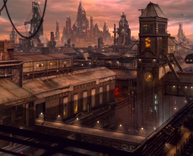 In the dark alley, Chadwick hands O'Brien the Klingon induction coils he asked for, courtesy of the Klingon ambassador to Farius. Chadwick asks why Raimus, Bilby's boss, wants the disruptors. O'Brien says he doesn't know, neither does Bilby, and asks if he can contact his wife. Chadwick says they can't risk it, and O'Brien leaves to give the disruptors to Bilby. Back in Graife's Bar, O'Brien gives them the disruptors, which they inspect. Flith asks where he got the replacement parts, which are hard to come by on Farius. O'Brien doesn't tell them who his supplier is, to the point they get angry, and he says he stole them from a warehouse on Degora Street, and he didn't want them to get implicated if he got caught. Bilby believes it, and decides to do something about Connelly's clothes. So, Bilby takes him to the same tailor he uses, to buy a new suit.