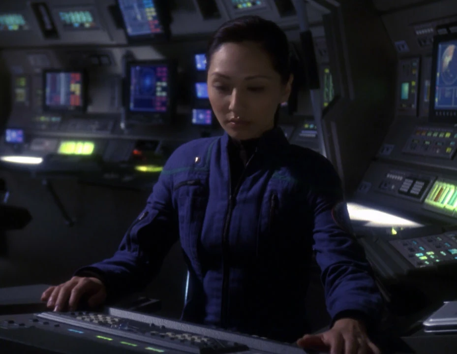 Brannon Braga and fellow series co-creator and Executive Producer Rick Berman were obviously looking for an Asian actress to play Hoshi Sato. ("Broken Bow" audio commentary, ENT Season 1 DVD/Blu-ray) Other aspects of the role were outlined in a character breakdown sheet that Paramount sent to talent agents upon seeking an actress for the part. There, Hoshi Sato was described thus; "Comm Officer. Japanese. Mid to late 20s. Striking and intelligent, Hoshi has a feisty spirit that often tests the patience of the crew. She's in charge of communications on Enterprise, but she also serves as ship's Translator. An expert in exo-linguistics, she learned to manipulate her vocal chords to emit a range of alien sounds no Human has ever produced. She has a natural affinity for picking up languages. Hoshi doesn't like the idea of being trapped in a 'tin can' hurtling at impossible speeds. Every time the ship jumps to warp she grips her console and closes her eyes. She's a 'white knuckle' space farer." [5]