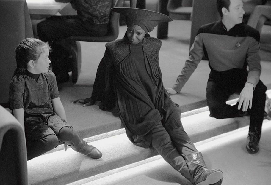 Noley Thornton, Whoopi Goldberg, and Brent Spiner relax between takes