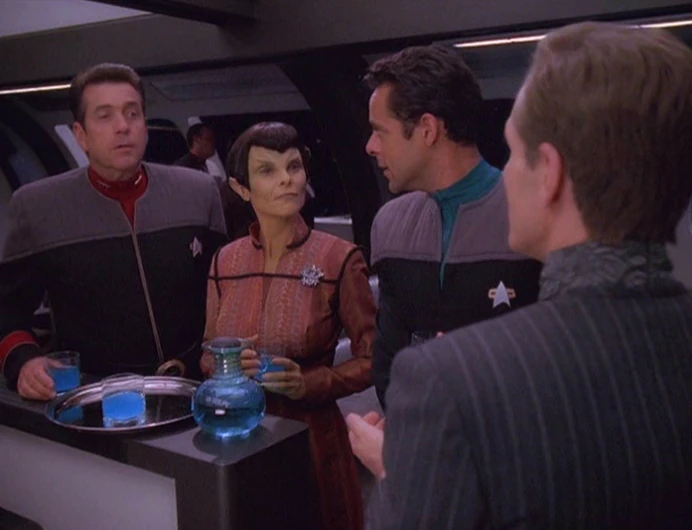 - - Julian Bashir, William Ross, and Kimara Cretak, as the admiral discovers the potency of the drink