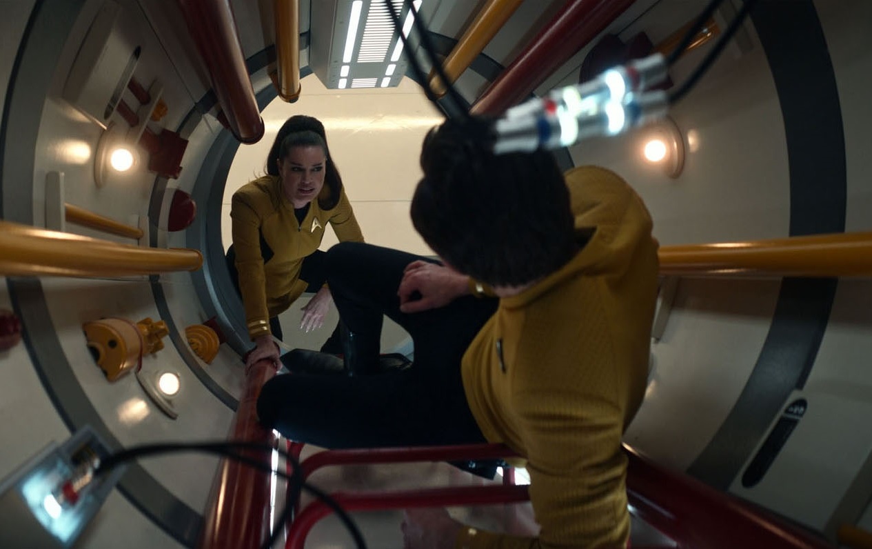 Kirk later returned to the Enterprise on a short-term posting; his commanding officer felt Kirk would benefit from shadowing Enterprise's first officer, Una Chin-Riley before he assumed the same position on the Farragut. During this time, La'an revealed her history with his alternate self, but Kirk revealed to her he was in a relationship with Carol Marcus who was pregnant with their son. (SNW: "Subspace Rhapsody")