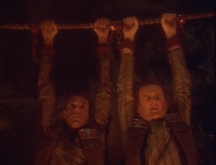 Bashir and O'Brien participate in Worf's kal'Hyah