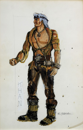 In the final draft script of Space Seed, Khan's name was noted to be pronounced, "KAWN". He was described as "an extremely handsome, well-built man. His face reflects the sun-darkened Aryian blood of the Northern India Sikh people, suggesting just a trace of the Oriental blood often found too. The features are intelligent, extremely strong, almost arrogantly so."