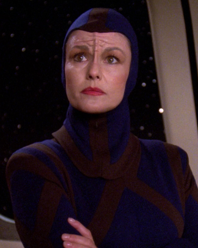 Lenore Kasdorf (born 23 July 1948; age 77) is the actress from Queens, New York, who played Prytt security minister Lorin in the Star Trek: The Next Generation seventh season episode "Attached". Her costume from this episode was later sold off on the It's A Wrap! sale and auction on eBay. [1](X)