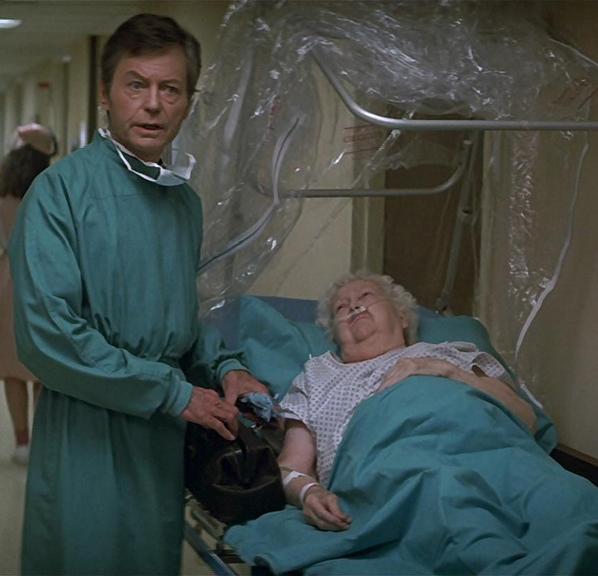 He later led a rescue team into a San Francisco hospital to save the critically-injured Chekov, pausing just enough to also provide an elderly lady suffering from kidney failure with some 23rd century medicine, and berate several 20th century physicians on their methods of practice. Accompanying his shipmates and the whales back through time to successfully save Earth from the Whale Probe, McCoy was acquitted with the rest of the crew for their offenses, and returned to duty aboard the newly commissioned USS Enterprise-A. (Star Trek IV: The Voyage Home)