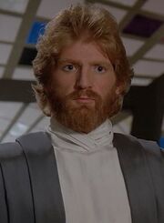 Riva and his interpreters arrive on the bridge to meet some of the bridge crew. He very diplomatically greets each of William T. Riker, Geordi La Forge and Data by commenting on Data's uniqueness and La Forge's VISOR. He then asks that Troi show him to his quarters. There, he asks her to dinner after a briefing from Picard's team.