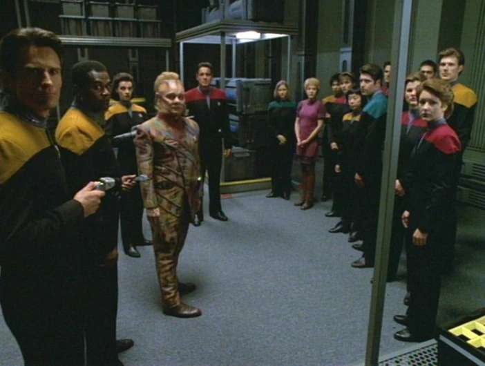 Thomas Riker on the bridge of the USS Defiant during the Orias Assault in 2371