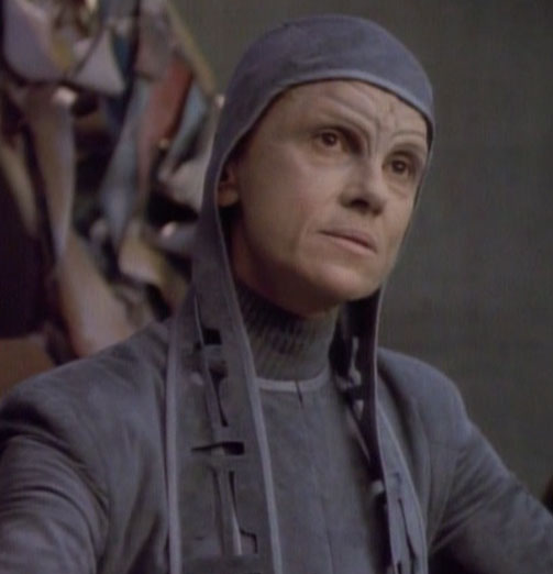 Megan Cole (born September 1941; age 84) is an actress who played Noor in the Star Trek: The Next Generation fifth season episode "The Outcast" and Senator Kimara Cretak in the Star Trek: Deep Space Nine seventh season episodes "Image in the Sand" and "Shadows and Symbols". She filmed her scenes for "The Outcast" on Monday 13 January 1992 on Paramount Stage 16. Her costume from this episode was sold off on the It's A Wrap! sale and auction on eBay. [1](X)