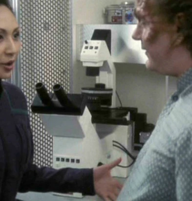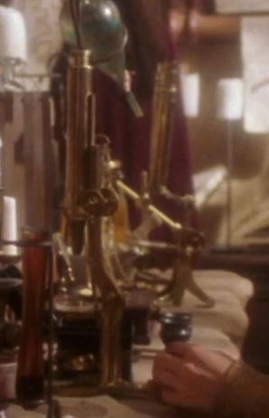 In a laboratory on Miri in 2266, Doctor Leonard McCoy used a microscope to analyze tissue samples from diseased members of a landing party which was visiting the planet and included himself. At one point, Spock, who was also in the landing party, referred to the microscope as "a museum piece" and started to describe its specifications, though McCoy interrupted him with an irritated request to be spared the analysis, simply satisfied that the apparatus worked. (TOS: "Miri")