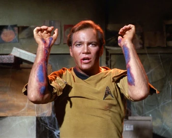 - - Kirk, tearing up his uniform sleeves to show the extent of the disease