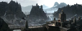 In the final draft script of "Judgment", an overview of an area on Narendra III shown in that installment was described as "A large city on this Klingon outpost, with familiar Klingon-style architecture. In the center of town, a GRAND TRIBUNAL BUILDING which proudly displays the three-pointed Klingon symbol." [3]