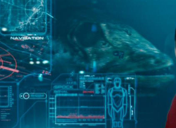 The oceans on Nibiru contained fish, some of which could grow quite large, like this giant fish who passed the observation bridge window while the USS Enterprise parked on the ground of the ocean. (Star Trek Into Darkness)