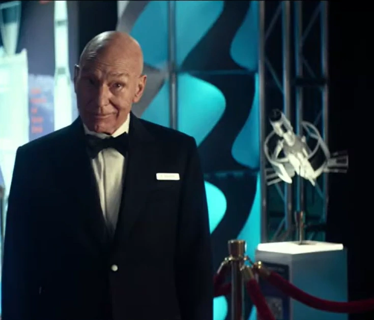 Picard standing next to a model of Nomad