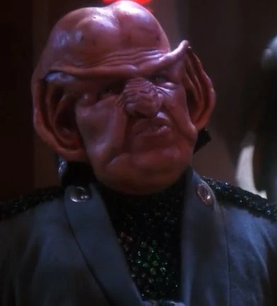 The combination of his rank insignia is unique in that his uniform bore all the hallmarks of a DaiMon's uniform, but he did not wear a tattoo typically associated with DaiMon's, which would become a trend through the remainder of the series.