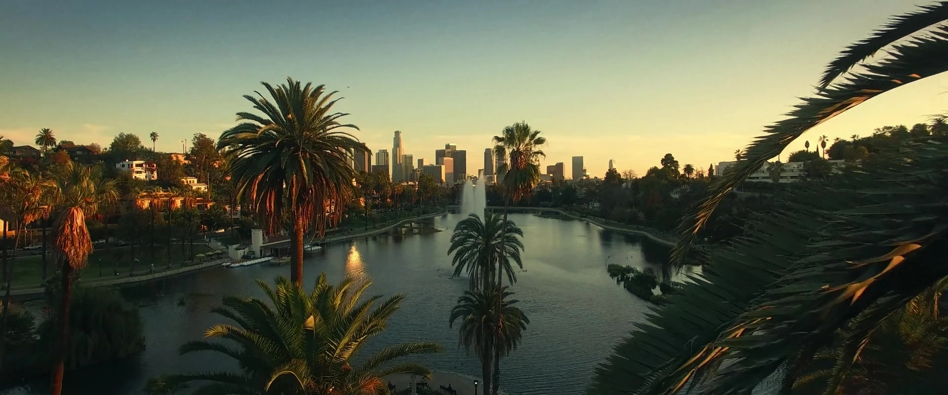 Echo Park Lake in Los Angeles, California was overlooked by palm trees. (PIC: "Assimilation")