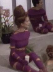 The young woman was a character in the Parallax Colony program. Lwaxana had brought Alexander to the holodeck to experience the program. Alexander was puzzled that the young woman and her friend were arguing all the time. He asked why they associated with each other. He was told that they were friends and who better to argue with than a friend. She joined them in a mud bath. (TNG: "Cost Of Living")